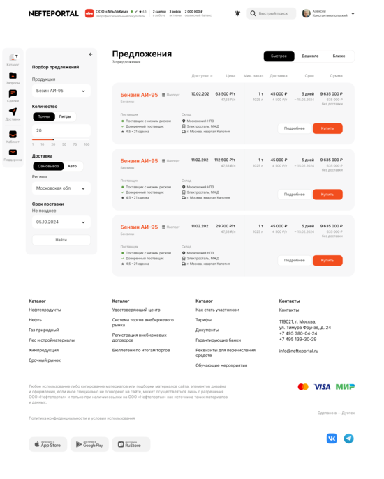 Автоматизирует процесс поиска и выбора перевозчиков, что позволяет компаниям быстрее находить подходящие логистические решения для транспортировки нефтепродуктов.